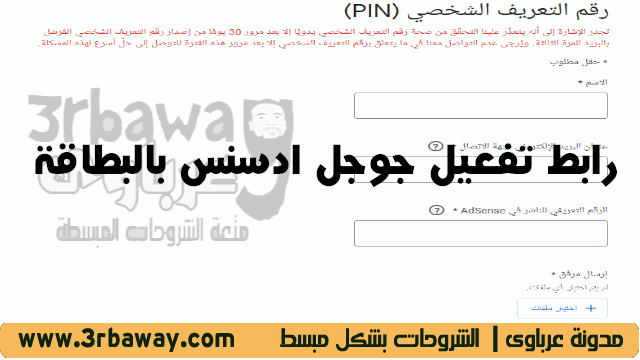 بعد الدخول الي الرابط سيتم اضافة المعلومات اللتي سبق ذكرها في الاعلي مع ترك مربع رمز pin فارغ، بعد الانتهاء نقوم بالضغط علي مفتاح الارسال اسفل النموذج